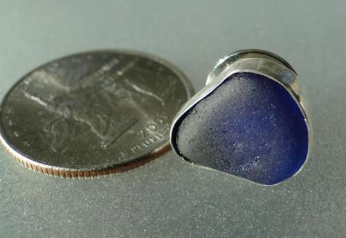 Sterling Silver Cobalt Blue Sea Glass Cufflinks #3